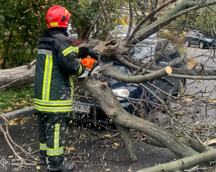 У Вінниці повалене вітром дерево впало на припаркований легковик