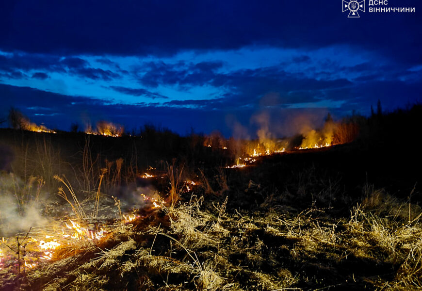 Пожежі фіксувалдись у Вінницькому, Жмеринському, Гайсинському, Хмільницькому районах та безпосередньо у Вінниці.