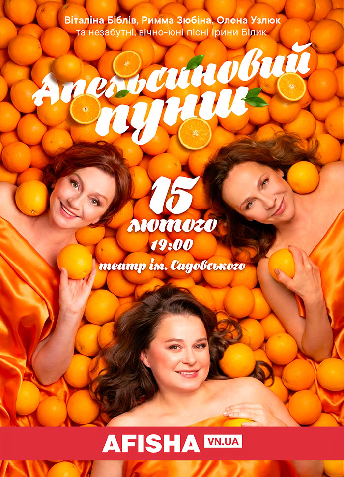 Квитки (від 350 гривень) встигніть обрати собі і коханим на сайті https://afisha.vn.ua/events/apelsynovyy-punsh
