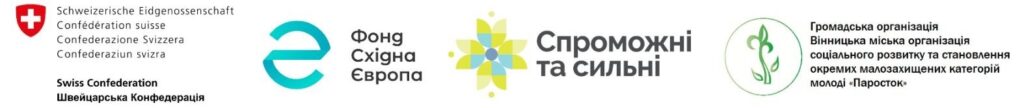 Проєкт «Соціальна згуртованість в дії» реалізується ГО «Паросток» у межах програми «Спроможні та сильні», що впроваджується Фонд Східна Європа за підтримки Швейцарії Embassy of Switzerland in Ukraine / Посольство Швейцарії в Україні.