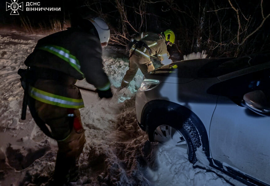 Минулої доби у Хмільницькому районі Вінниччини рятувальникам довелось двічі визволяти автомобілі, які застрягли в снігових кучугурах.