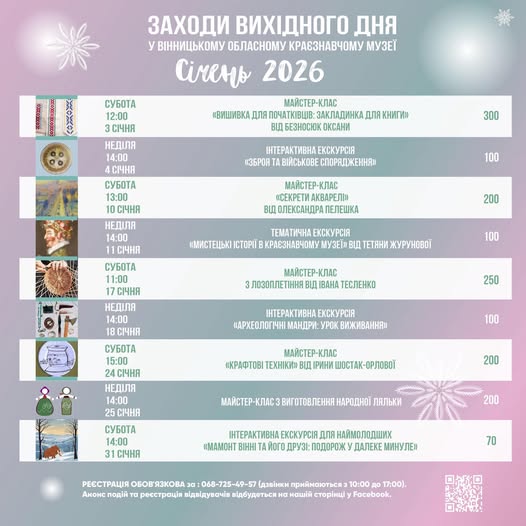На початку 2026 року Вінницький краєзнавчий музей планує організувати низку заходів. Мова про екскурсії та майстер-класи.