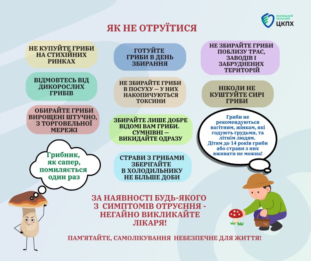 На Вінниччині майже закінчився сезон збору грибів. Хоча у регіоні існують сталі традиції, переважно їх збирають досвідчені грибники, проте щороку фіксують випадки отруєнь. Зазвичай, це виникає у разі недотримання термічних ланцюгів обробки та збору неїстівних грибів. З початку року в області зареєстровано 14 постраждалих, серед яких 15-річна дівчина.