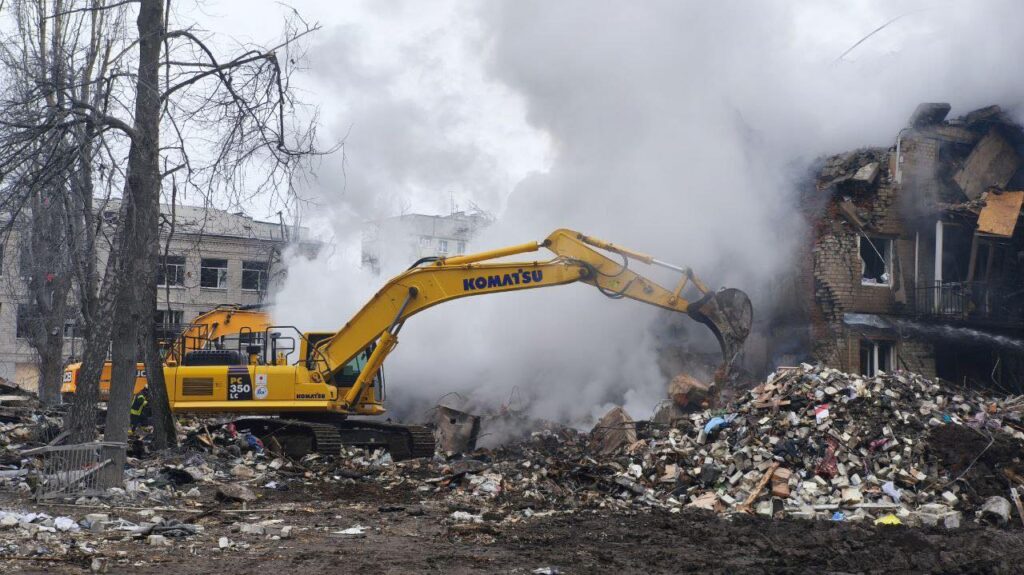 З ночі триває розбір завалів житлового будинку у Київському районі Харкова після російського удару балістичною ракетою. Зруйновано під’їзд, пошкоджено верхні поверхи сусіднього будинку. На жаль, станом на зараз відомо, що семеро людей загинуло. Більш ніж десять людей поранено, серед них – діти. Під завалами ще можуть бути люди. Всі необхідні служби працюють на місці для порятунку.