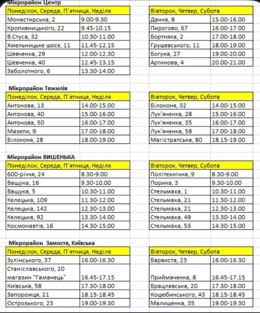«Подолянка» опублікувала графік підвозу води.