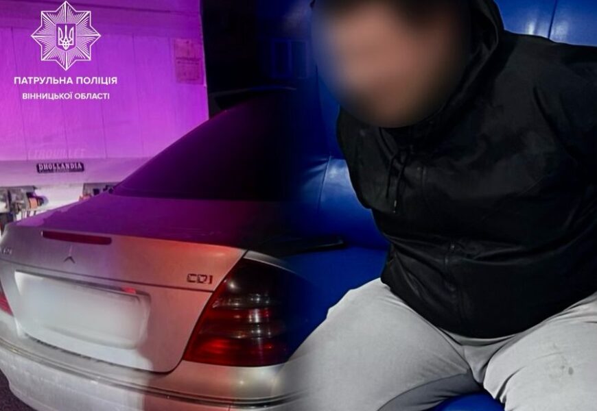 У ніч на 21 квітня у Вінниці на вулиці Пирогова автомобіль Mercedes-Benz на очах патрульні. Водія зупинили. Коли інспектори запропонували кермувальнику перевірку на Драгері, той вирішив пограти у Шумахера – різко натиснув на газ…