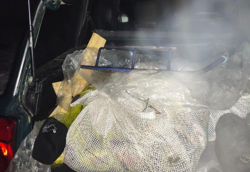 У селі Степашки Гайсинського району рибоохоронці виявили чоловіка, який рибалив двома сітками ловив рибу. Виловлену рибу порушник намагався сховати у багажнику автомобіля та втекти з берега Південного Бугу.