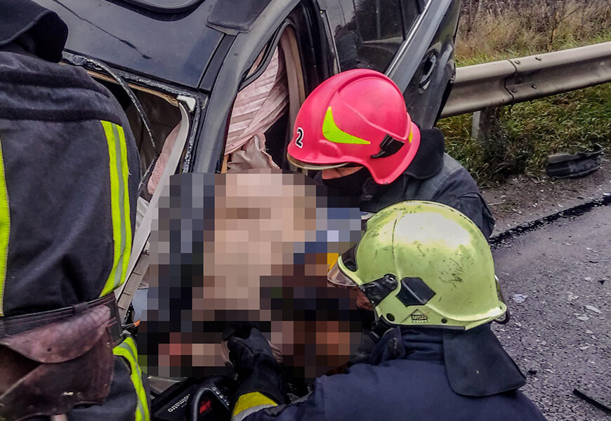 Після того як рятувальники деблокували жінку з салону, її передали бригаді екстреної допомоги.