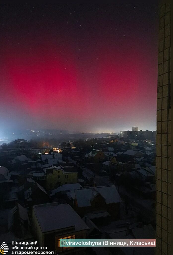 Вінниччина потрапила до «переліку» північних і західних регіонів країни, в яких протягом останніх ночей фіксують явище, яке називається полярним сяйвом. Наразі барви у небі бачили переважно у центральних та північних районах області.