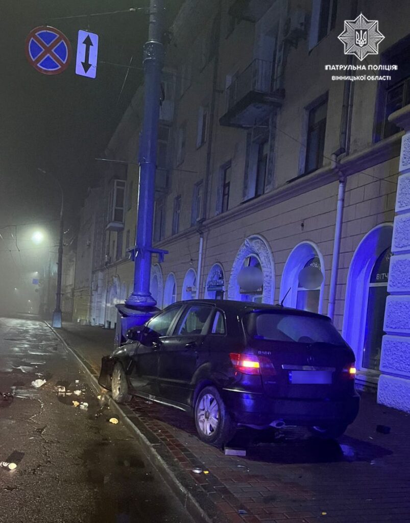 Сьогодні, 10 грудня, вночі у Вінниці на вулиці Соборній сталась чергова ДТП. Пощастило, що у цей час середмістя майже порожнє, тому людей не зачепило… На відміну від конструкцій. Адже водій Mersedes Benz пошкодив трамвайну зупинку «вул. Соловйова» біля 17-ої школи та в’їхав в електроопору.