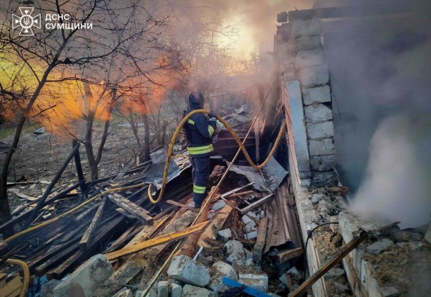 У Шостці на Сумщині одна людина загинула, одна – травмована. Влучання зафіксовані у трьох місцях міста. Під удар потрапив житловий сектор, виникли пожежі. В одному з багатоквартирних будинків рятувальники дістали з-під завалів одну людину та евакуювали ще 16.