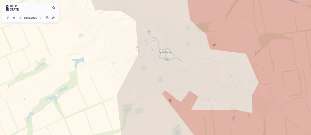 Окупанти стверджують, що знаходяться в центрі міста, яке нібито практично ними захоплено. Картa Deep State показує більшу частину Гуляйполя як сіру зону.