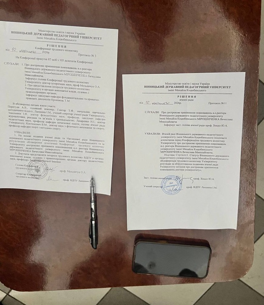 На завтра, 12 лютого, у Вінницькому державному педагогічному університеті були заплановані вибори ректора. Колектив мав обрати одного з трьох. Натомість, за добу, ввечері 10 лютого, міністр освіти й науки Оксен Лісовий підписав наказ про перенесення виборів на 23 квітня. Без пояснень.