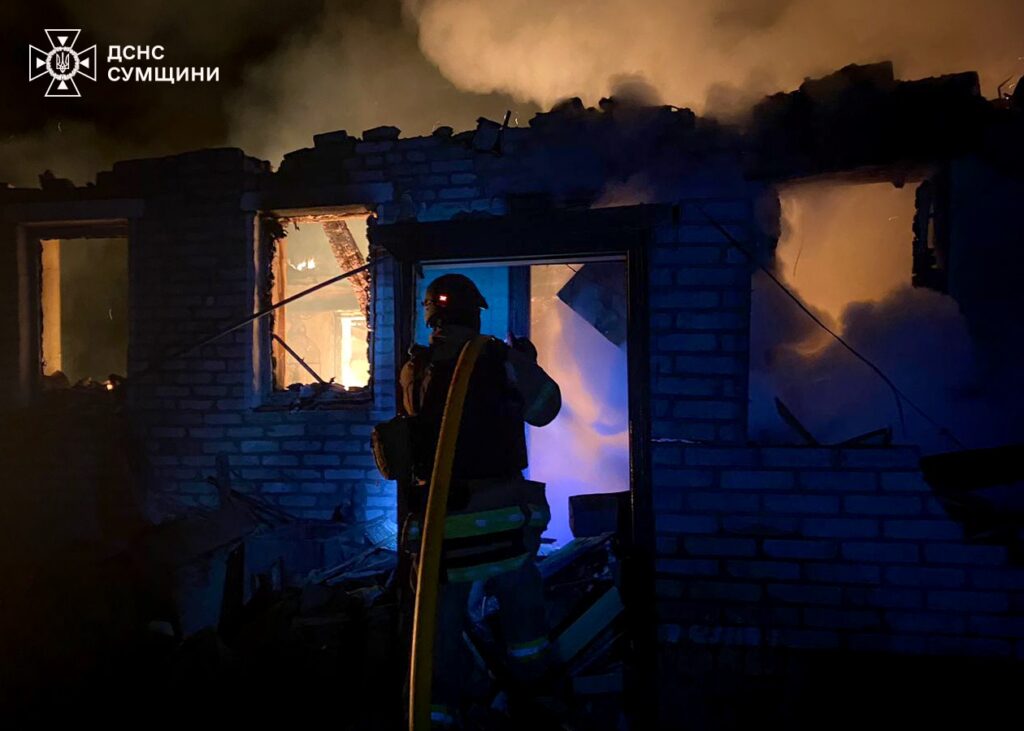 На Сумщині в Охтирському районі, від ударів БПЛА пошкоджено цивільну інфраструктуру, виникла пожежа. У Краснопільській громаді, авіаційний удар було нанесено по житловому сектору. Виникло загоряння. На жаль, травмована жінка та чоловіка. Попри постійні повторні атаки, рятувальникам вдалося ліквідувати всі осередки горіння.