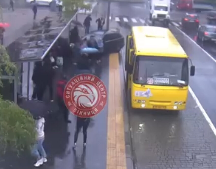 У середмісті Вінниці на зупинку громадського транспорту влетів легковик