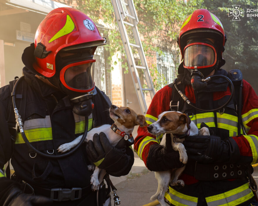 Під час гасіння пожежі у Вінниці надзвичайники врятували двох песиків і кішку