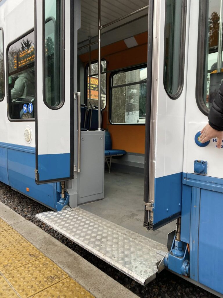 «Зробили так, щоб цей трамвай був зручний для маломобільних пасажирів: людей на кріслах колісних, з милицями, для мам із візочками, ветеранів на протезах, для людей старшого віку», – пояснив очільник громади.