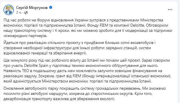 За словами С.Моргунова, про екоавтобуси мова йшла ще на попередній минулорічній зустріч. Тепер розмовляли про підготовку техніко-економічного обґрунтування.