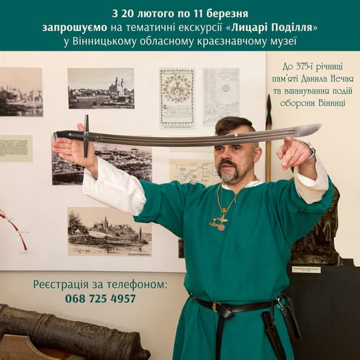 З нагоди відзначення 375-ї річниці пам’яті Данила Нечая та вшанування подій оборони Вінниці в обласному краєзнавчому музеї організовують тематичні екскурсії на тему «Лицарі Поділля». Вони відбуватимуться протягом 20 лютого – 11 березня.