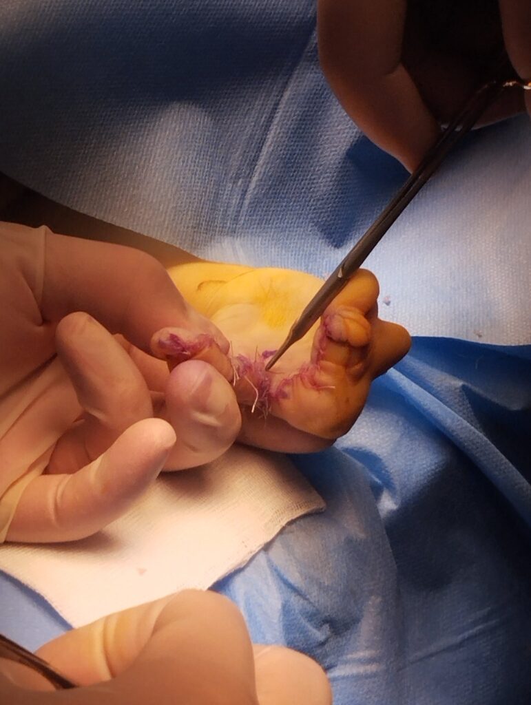 Успішно виконано перший етап реконструктивної операції, а саме роз’єднання пальців і відновлення їхньої довжини, а також видалення «зайвого» шостого пальця. Плюс косметичне виправлення