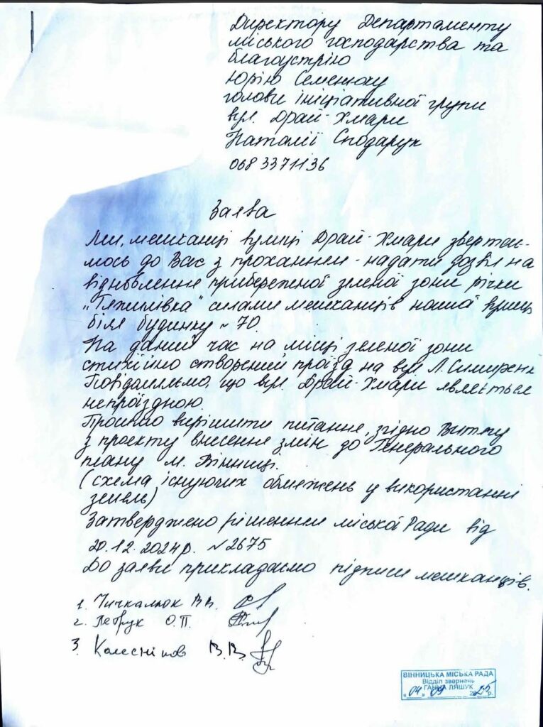 У Вінниці у зеленій зоні власник ділянки облаштував «стихійну» дорогу, тому місцеві жителі хочуть втручання влади