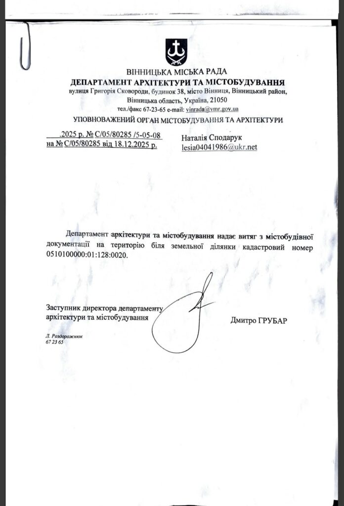 Водночас, за словами місцевих жителів, власниками ділянки по вулиці Лева Симиренка, розташованої за 50 метрів, облаштовано облаштували тимчасовий проїзд через зелену зону. Його засипали щебнем. І тепер цим стихійним проїздом їздять вантажівки, адже там будується, як кажуть вінничани, база відпочинку.
