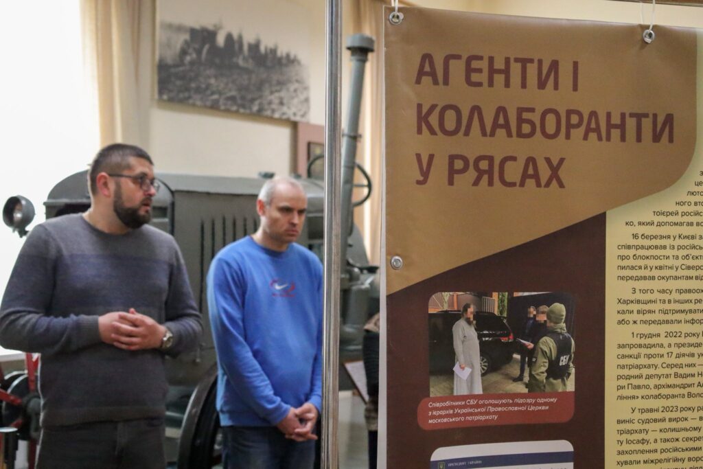 На 10 банерах виставки представлено матеріали про співпрацю керівництва РПЦ із совєцькими каральними органами й Росією та їхню підтримку злочинів російського агресора проти українського народу й знищення православних храмів та священників, які виступали проти окупації України.