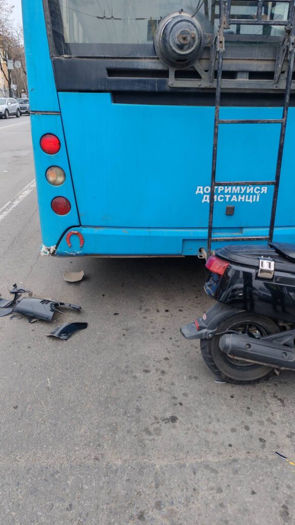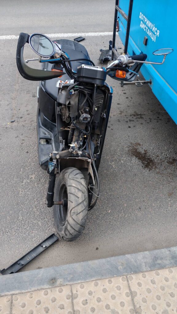 За попередніми даними, водій скутера не розрахував швидкість та не зміг спрямувати свій транспортний засіб так, аби уникнути зіткнення.