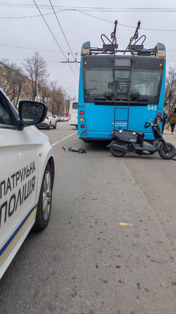 Сьогодні, 30 березня, вранці водій скутера врізався у тролейбус. Його госпіталізовано.
