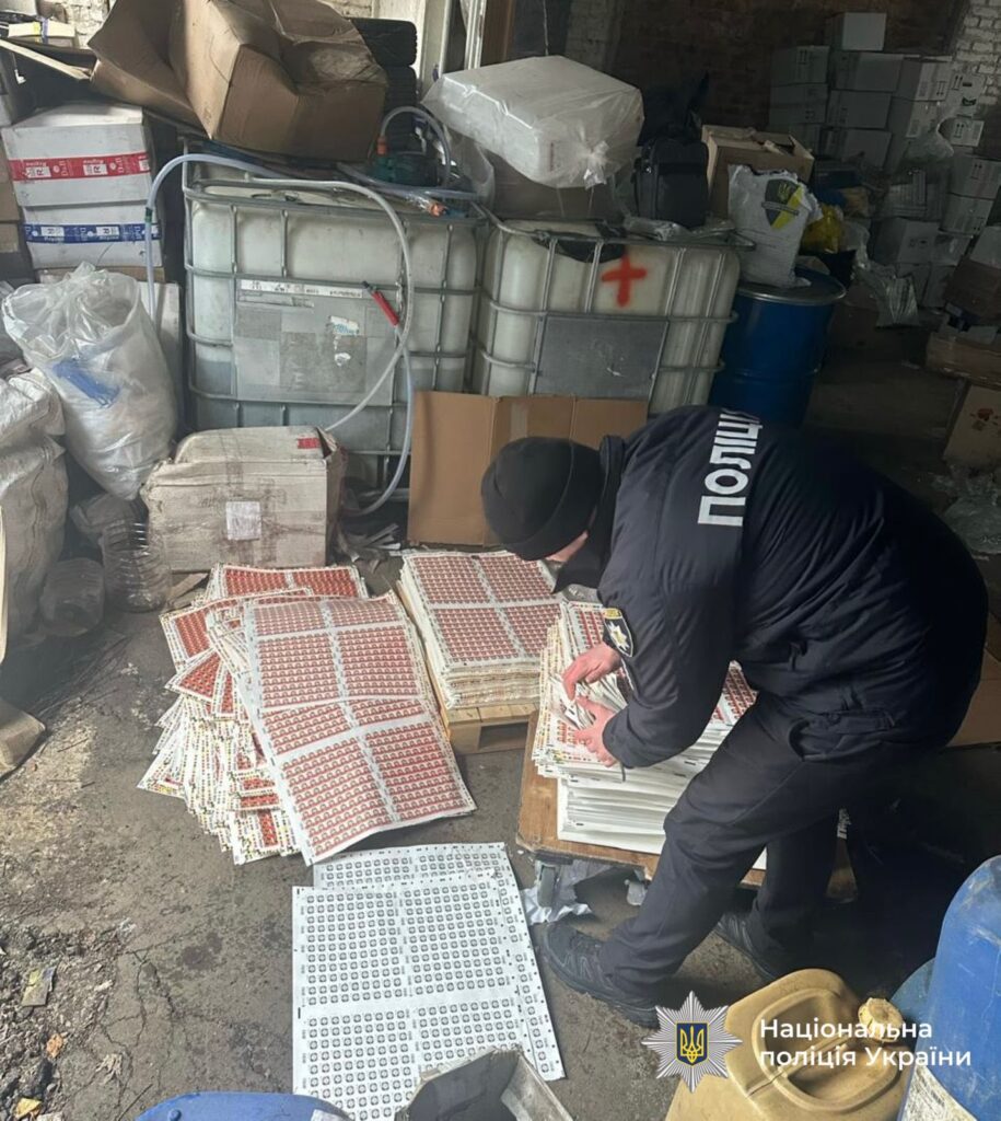 Під час санкціонованих обшуків за місцем проживання фігуранта та в орендованих приміщеннях поліцейські вилучили поліграфічне обладнання, матеріали для друку та значні партії готової продукції.