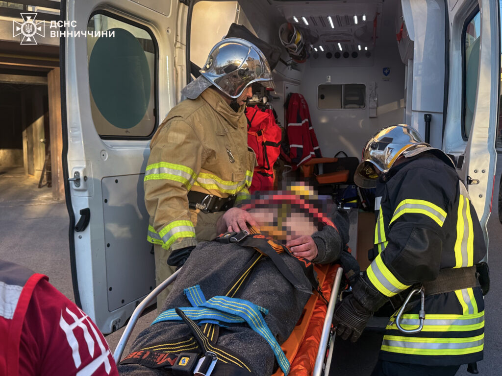На ношах чоловіка доправили до автомобіля екстреної допомоги.М завезли його до лікарні.