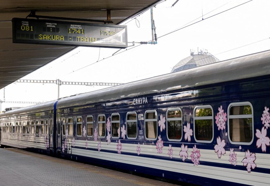 За підтримки японських партнерів «Укрзалізниця» 28 квітня запустила новий флагманський поїзд «Сакура». Він курсуватиме сполученням Київ – Ужгород.