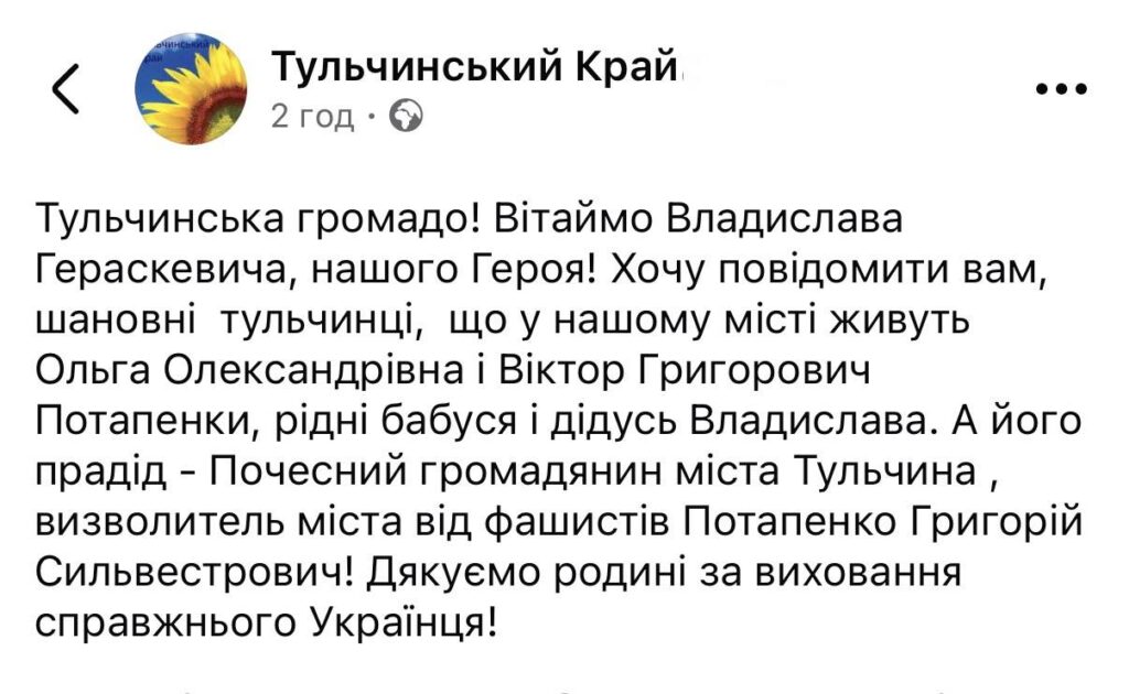 Український скелетоніст Владислав Гераскевич на Олімпійських іграх 2026 гучно проявив свою громадянську позицію, що не сподобалося «сильним світу цього». Його «шолом пам’яті», який так не сподобався керівництву МОК, фактично спричинив міжнародну хвилю обурення та поставив під сумнів авторитет спортивних функціонерів. Одночасно сам спортсмен вже став більше відомим, ніж олімпійські чемпіони. До речі, виявляється, його родичі проживають у Тульчинській громаді Вінниччини.