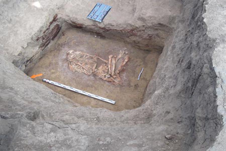 Дослідники встановили, що в могилі лежали кілька людей, причому їх кістки були перемішані та перекладені. Це свідчить про повторні ритуальні дії: кістки могли діставати, очищати, фарбувати та повертати назад у могилу. Така практика відома в різних доісторичних культурах Європи, але для території України вона досі залишається рідкісною і погано вивченою.