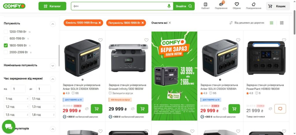 Для розуміння вартості пропонуємо ціни на зарядні станції у магазинах мереж, які представлено у Вінниці.