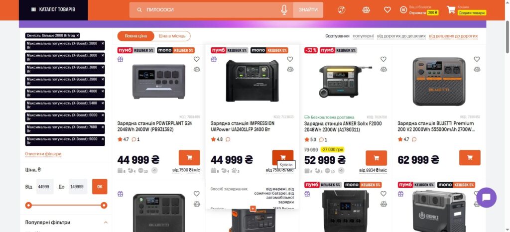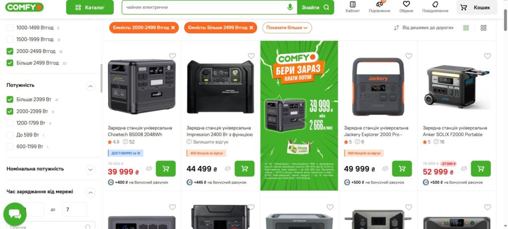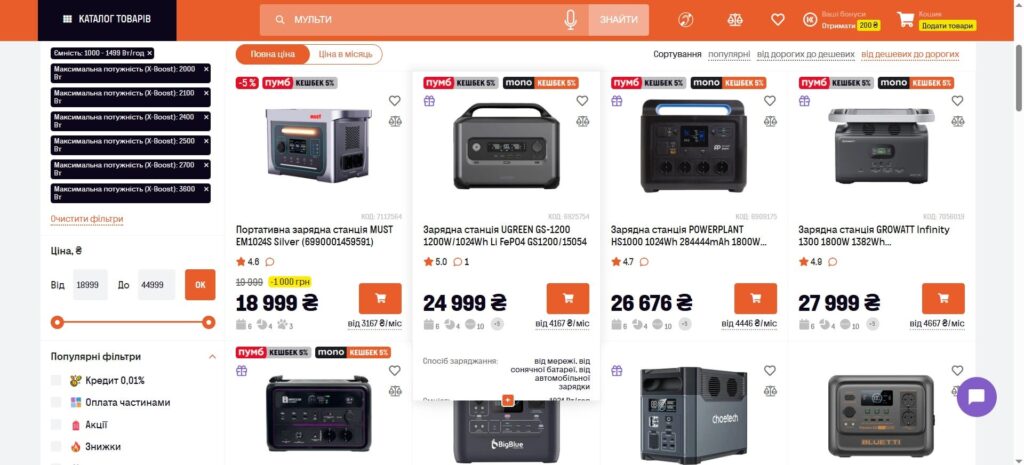 Зарядна станція потужністю 2000-3000 Вт дозволить вам одночасно живити більшість найнеобхідніших пристроїв і забезпечить резерв для потужніших приладів.